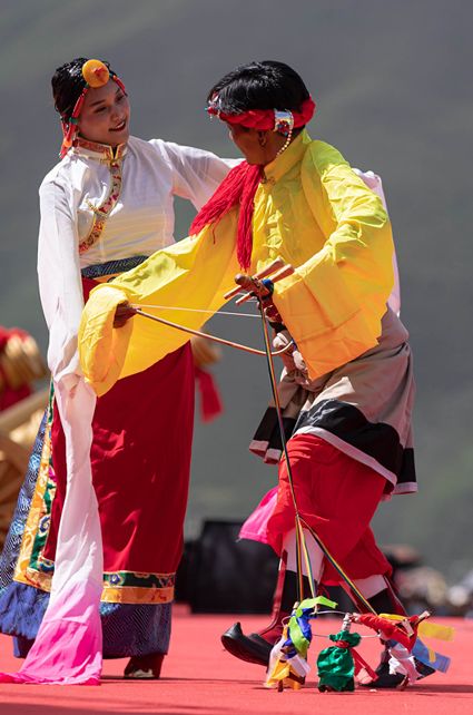 8月6日至8日,2020四川甘孜山地文化旅游節(jié)系列活動(dòng)之一的色達(dá)金馬文化節(jié)在色達(dá)縣扎青塘草原舉辦。當(dāng)?shù)厝罕娚碇?jié)日盛裝載歌載舞、歡聚一堂,文藝表演、賽馬、傳統(tǒng)藏族民俗體育比賽、傳統(tǒng)服飾表演、民間藝術(shù)和非遺展演等活動(dòng)精彩紛呈。