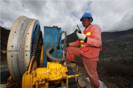 公司董事長(zhǎng)劉元生在海拔4600米的理塘-下壩輸電線路施工現(xiàn)場(chǎng)檢查建設(shè)情況。公司 圖
