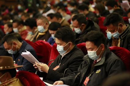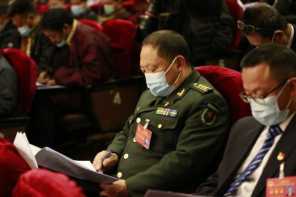 代表們認真聽取政府工作報告。