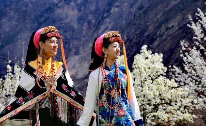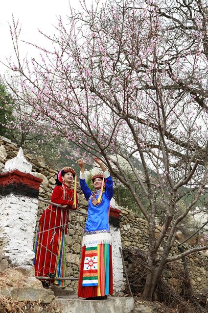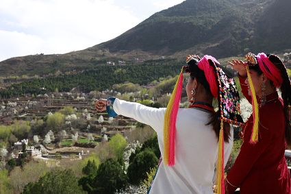 高大挺拔的梨樹如星星般散落在獨(dú)具特色的嘉絨藏族民居和古老碉樓附近。眼前看到的是雪白的梨花,身邊走過(guò)的是笑容比梨花還甜的藏族姑娘,交融成一道絕美的風(fēng)景線。