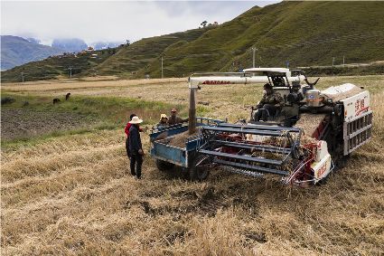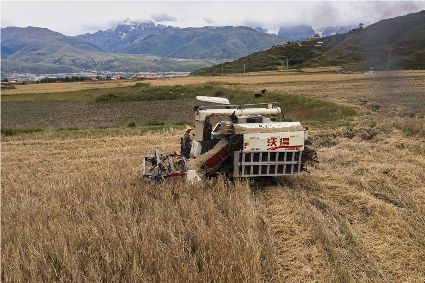 每年9月初,都是甘孜縣青稞收獲的季節(jié)。今年的秋收季已經(jīng)開始,甘孜縣甘孜鎮(zhèn)斯俄片區(qū)的村民正忙著收割青稞。如今的雪域高原,農(nóng)業(yè)生產(chǎn)已經(jīng)基本告別人力耕作時代,實現(xiàn)了機械化耕作。今年甘孜縣的青稞長勢良好,有望成為又一個豐收年。