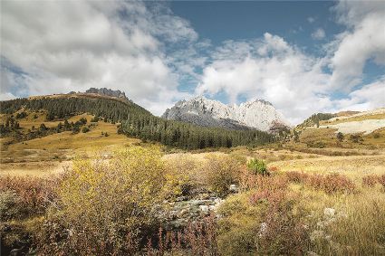 多吉卓瑪山和紅灌木被晨光打得透亮,聞到了紅灌木被陽光照射后散發(fā)的香味,這微濃的香味,帶給人無限的遐想。我的心里住著滿滿的秋色,只言片語已無法勾勒出秋的美!