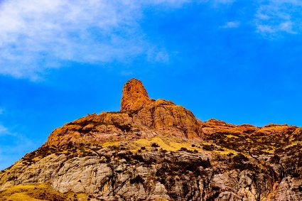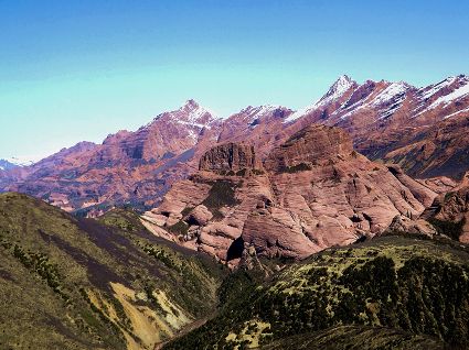 位于四川省西部雅礱江河谷的新龍紅山丹霞地貌被稱(chēng)為“雅礱秘境”“地之肚臍”,該丹霞地貌正處于壯年期,整體海拔大多在4200米—5000米之間,超過(guò)5000米的山峰有10余座,高差大于800米,屬于典型的高寒型丹霞。