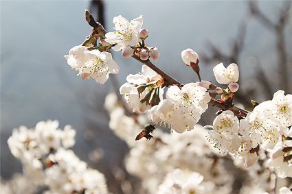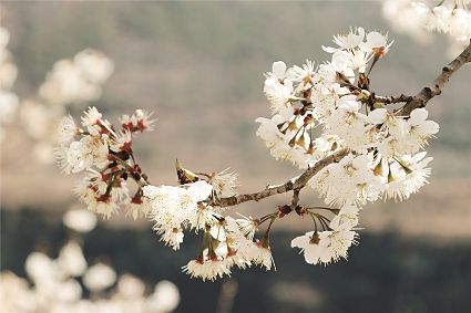 說起三月瀘定的美,可不止油菜花。在冷磧鎮(zhèn),純白如雪的櫻花也競(jìng)相開放。它們花團(tuán)錦簇,映著藍(lán)天,頗為壯觀。櫻桃花林中,簇簇花兒綴滿枝頭,潔白若仙。微風(fēng)吹過,滿樹搖曳,像極了千萬個(gè)精靈在春色中舞蹈。