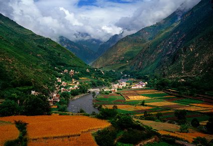 丹巴藏寨是嘉絨藏寨中最具特色的。尤以甲居、聶呷、革什扎和巴底鄉(xiāng)最為突出,冰川雪線之下,村落散布,一幢幢民居依山就勢、錯落有致地融于自然環(huán)境中,體現(xiàn)了天人合一的理念。遠(yuǎn)遠(yuǎn)看去,充滿靈氣的山谷中,翡翠般的青草綠樹之中,是那沉甸甸的田地和隱在密林深處的寨房,伴著潺潺溪流,一幅富有動感的絕妙山寨畫卷隨之展示在你的眼前。