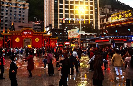 流光溢彩的不僅僅是夜的迷醉,閉上眼你也會聽到情歌的婉轉(zhuǎn)映山映水。紅袖翩翩起舞,踢踏舞步高昂,豪放的激情足以讓過往的游客挪不動腳步。