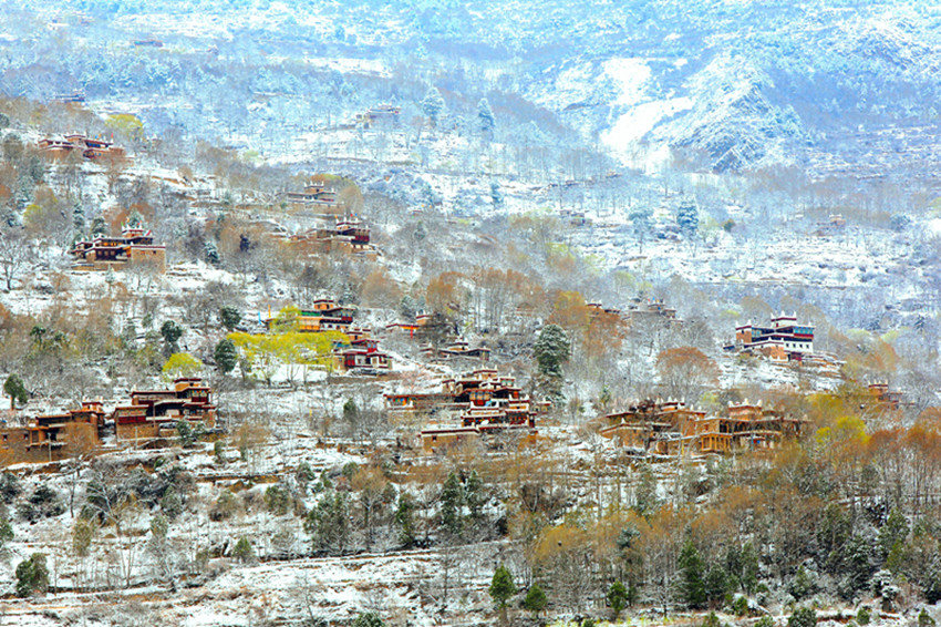 紛紛揚揚落下的雪,覆蓋在斑斕的彩林上,被太陽一曬,格外好看,來丹巴,享受愜意的暖陽吧!