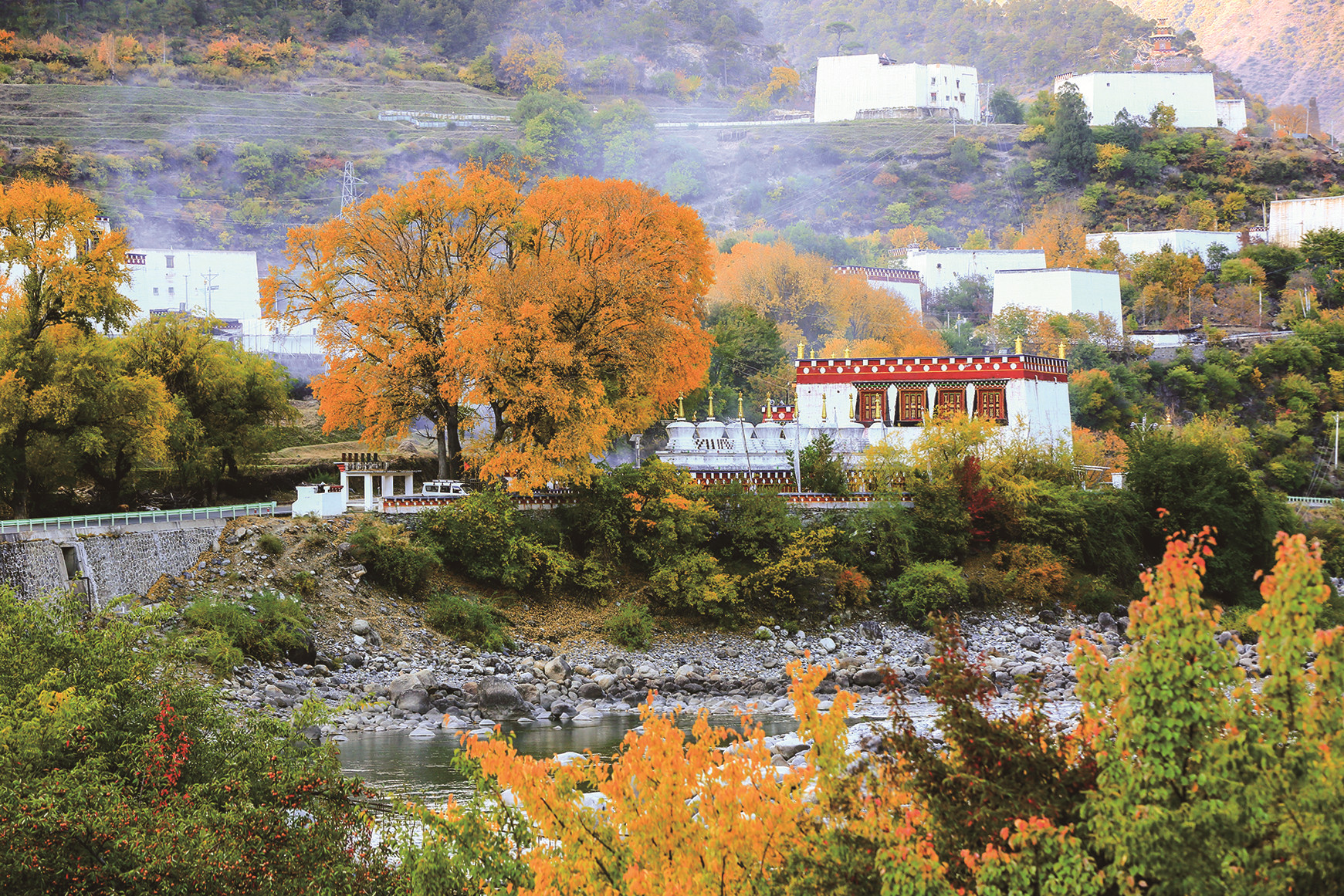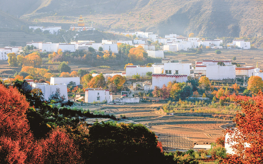 深秋時(shí)節(jié),香巴拉鄉(xiāng)城處處是美景,從高山到天邊地角再到房前屋后,目之所及是色彩斑斕的詩意畫卷。在一年的四季中,秋季是最為與眾不同,特別是進(jìn)入深秋時(shí)節(jié),來到鄉(xiāng)城,仿佛置身于一個(gè)立體畫廊,遠(yuǎn)處是潔白的雪上,身邊是不同林木,青黃橙紅白色組合成的美麗圖畫,別具風(fēng)情,秋天的一切美好盡在其中。