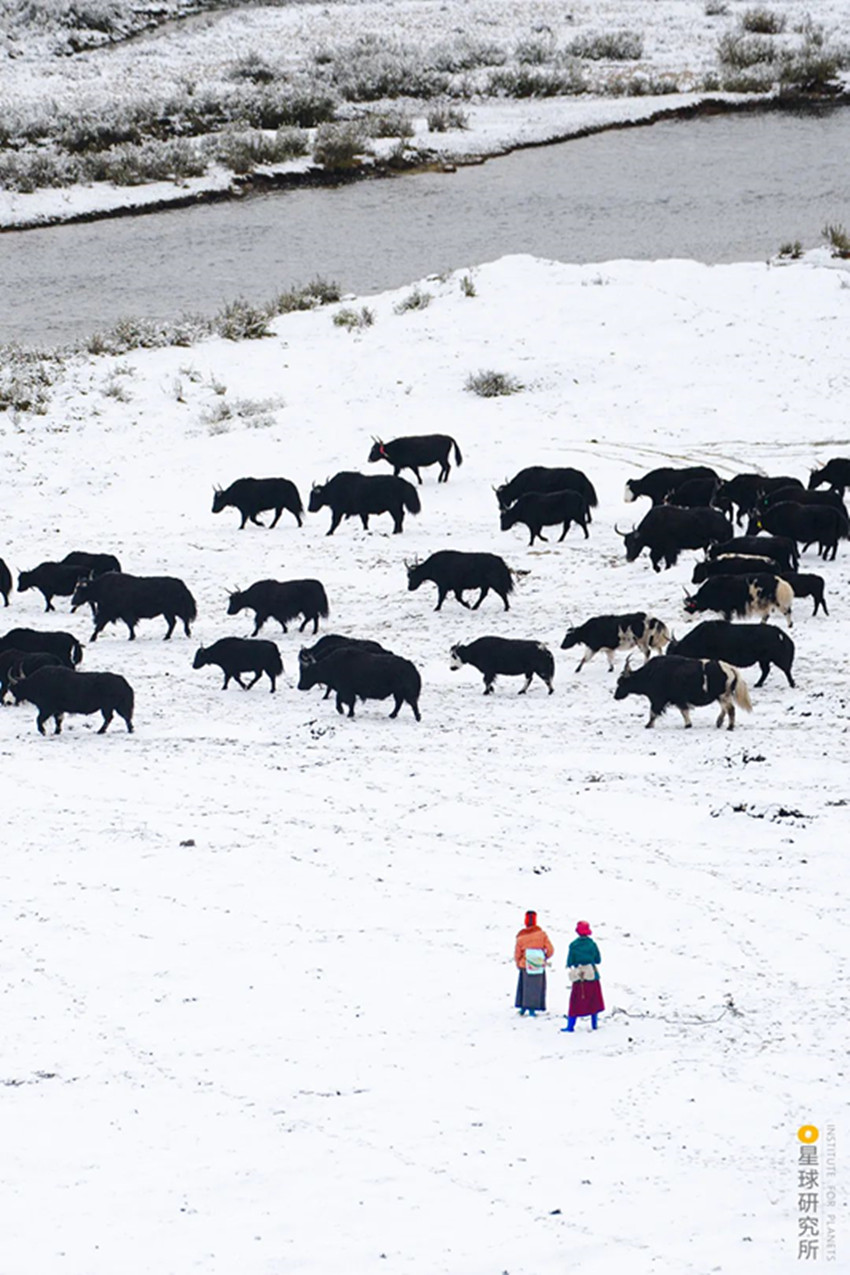 高原上定居不易而自然還有更多的考驗(yàn),高寒貧瘠的土地,山脈阻隔的交通,峽谷中蓄勢(shì)的山洪,斷裂帶上頻繁的震顫,隨時(shí)都可能給人們的生活籠罩上一層陰影。所幸從古至今,不斷地適應(yīng)、不斷地創(chuàng)造,成為了這片人間的底色。為了抵御高原的寒冷,人們用山羊等動(dòng)物皮毛織起布匹,縫制寬袍長袖的袍子,發(fā)展出特色鮮明的藏裝;為了對(duì)抗物產(chǎn)的貧瘠,人們飼養(yǎng)牦牛,從牦牛奶、牦牛肉中獲取營養(yǎng),用牦牛毛織成的布料做帳篷,點(diǎn)燃牦牛糞生火。