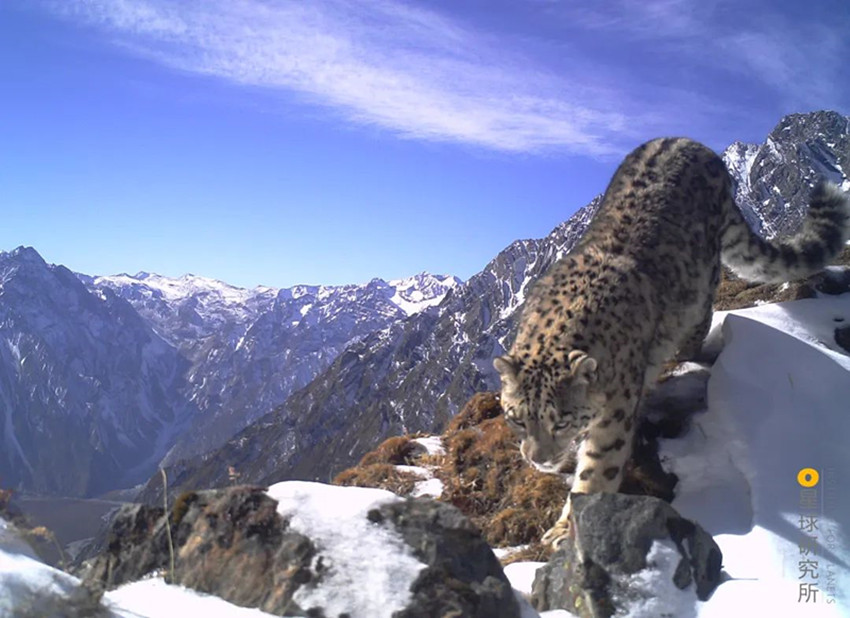 有蹄動(dòng)物能更好地適應(yīng)山地的崎嶇,巖羊一邊在陡峭的崖壁上行走、一邊懵懂地張望,飛檐走壁如履平地。高大的白唇鹿,有寬大的蹄子幫助它攀巖,它們生活在海拔3000——5000米的高山,是棲息海拔最高的鹿類(lèi)。在這看似平靜的曠野之中,獵食者已經(jīng)出動(dòng),食物鏈頂端的雪豹下山巡視、藏狐頻頻回眸,眼神銳利,金雕在山間盤(pán)旋,洞察著地面的一切。
