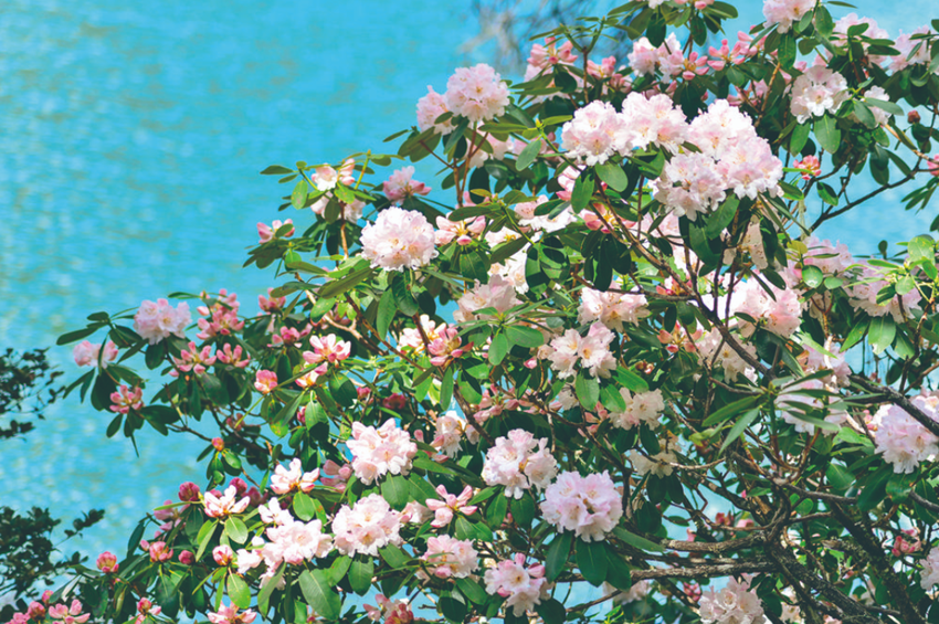 九龍縣被稱為高山杜鵑的故鄉(xiāng)。每年5月,九龍春光明媚,花潮涌動,漫山遍野各色花兒爭奇斗艷,然而杜鵑花在其中最為耀眼奪目。杜鵑萬紫千紅,匯集在一起,深淺濃淡,開得爛漫又無所拘束,在嫩葉的襯托下美不勝收。