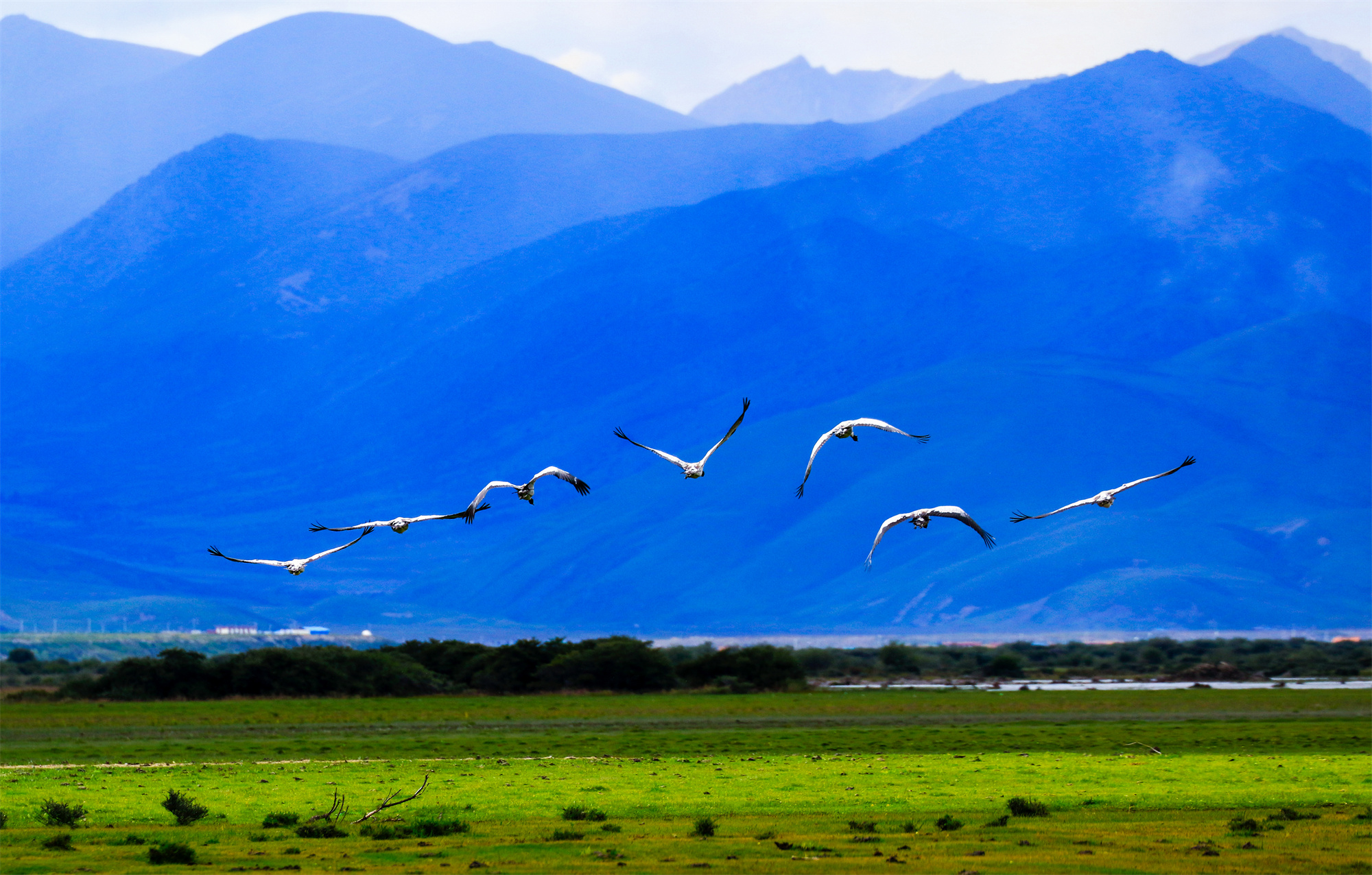 丹頂鶴、水獺、羚羊、青羊、黃鴨、旱獺等野生動(dòng)物混雜其中;清晨,牧民的炊煙裊裊直上與草地上升起的淡淡薄霧混在一起,尤如幻境。
