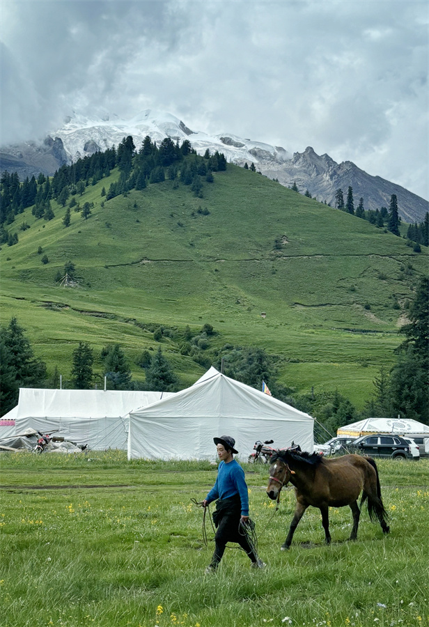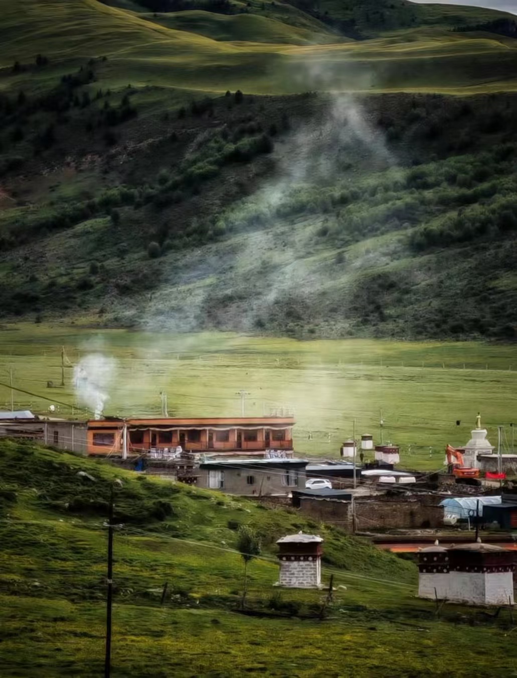 然日卡村是格聶山下一個典型的藏族村莊,因自然景觀優(yōu)美而聞名。站在村前觀景平臺上,能看到以雄奇險峻而著稱的格聶神山。格聶神山位于理塘縣西南部,是四川省甘孜藏族自治州理塘縣境內的著名山脈,?它不僅是四川第三高峰,?而且因其獨特的自然景觀和深厚的文化背景,?吸引了眾多旅行者和朝圣者。?格聶神山的地質構造和自然景觀極為豐富,?包括冰川、?雪峰、?草原、?沼澤、?瀑布等,?展現(xiàn)了大自然的鬼斧神工和生命的多樣性。?