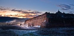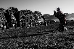 石經城位于距石渠縣城呢呷鎮(zhèn)東北約90公里處的阿日扎鄉(xiāng)境內,坐落在雅礱江支流洛曲河西岸一處兩山相望的草原間,背靠一座平緩、渾圓的山丘,前面是一望無際的草原,由于草原極為遼闊,遠遠望去,整座城并不顯得特別雄偉、壯觀,但走近細看,這座用一塊塊刻滿經文和佛像的石片、石塊在漫長歲月中逐漸壘砌起來的石城,所蘊含的厚重與蒼茫,堅韌與神秘,讓我想起荷爾德林所說的“那些四處飄游的分散的力量,都匯聚在一個黃金般的中心”。