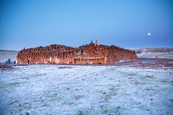 松格嘛呢石經城坐北朝南,呈長方形。東西長73米,南北寬47米,外墻高10米,城中心主體部分最高處為15米。經城四周掛滿經幡,都是轉經的信眾敬獻的,墻體上布滿了重重疊疊的壁龕,放置著各種雕刻精美的彩繪石刻佛像與神像。石刻中有淺浮雕,也有線刻,雖在歲月的侵蝕下褪去了顏色,但每一塊經文都刻得工整有序,栩栩如生。據(jù)專家學者實地勘察統(tǒng)計,僅石經城外圍墻上就布有神龕383處,其中正面墻204處,東面墻68處,西面墻62處,背面墻49處。除此之外,城內同樣布滿了無數(shù)的神龕,均供奉著雕刻精美、神態(tài)萬千的石刻佛像。石經城中刻繪佛像最多的是格薩爾王和他的30員大將,這些佛像、文字極具考古價值,是研究格薩爾文化的重要材料。