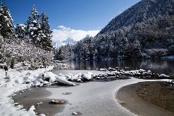 進(jìn)入木格措的冬天就是進(jìn)入了一片美麗的冰雪天地,然而在這里,除了冰雪,還有陽(yáng)光、沙灘、藍(lán)天處處充滿著浪漫的氣息。早晨,當(dāng)你站在海拔3780米的木格措海子觀景臺(tái)前,閉上眼睛細(xì)細(xì)品味雪山后暖暖陽(yáng)光照射在身上的感覺;工作、生活、煩惱……一切拋在腦后!在景區(qū)的樹上到處是漂亮的冰掛,讓人仿佛一下子進(jìn)入純潔晶瑩的人間仙境;在海子旁自然形成的一大片名為黃金海岸的沙灘,更是給來到這里的人們帶來情海的感受。