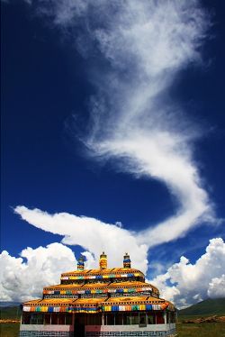 云在天上飄動,影子在大地上掠過,碧綠的草地在云流的映襯下五彩斑斕,猶如一塊巨大的迷彩布,把草地打扮得分外妖嬈。云不墨守成規(guī),每時每刻都有新創(chuàng)意;云有層次的美,有型有款。時刻花樣百出、千奇萬巧的云景,常使人遐想聯(lián)翩。我愛高原的云,因為亦真亦幻的云仿佛成了心靈遠游的載體,寄托著人們的留戀與追求。