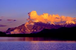 高原是云的故鄉(xiāng)。大團大團的云朵純粹潔白,掛在天空沉甸甸的,既濃重,又輕柔,如詩,如夢。清晨,云在山峰彌漫,在山谷涌動,近一些的飄在眼前,恍如人在云中;稍遠些的縈繞在山間,山似夢中仙境。雨雪之后,棉花似的云朵越開越大,瞬間變成了輕柔的白紗,在山間裊裊升起。再之后像雪白的羊群,似奔騰的戰(zhàn)馬,如匆忙的使者,從容飛渡,來去無蹤。