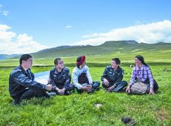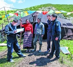 新龍縣拉日馬牧區(qū)派出所,地處海拔3768米的山塬草地,全所干警7人,負責(zé)管理方圓1527.19平方公里內(nèi)7個行政牧村、53個牧業(yè)小組、1269戶共計5600多人的治安秩序。這里遠離縣城,卻和周邊理塘、雅江、道孚三縣牧區(qū)相接,社會狀況復(fù)雜、自然環(huán)境惡劣,轄區(qū)內(nèi)大多數(shù)牧場靠騎馬、步行跋涉才能到達。多年來,全所干警以艱苦為榮,與牧民一家親,并用實實在在的工作業(yè)績,徹底改變了過去突出存在的打架斗毆、交通混亂和治安案件時發(fā)等問題。牧區(qū)的和諧穩(wěn)定,牧民的安居樂業(yè),贏得了牧民群眾的交口稱贊。(紫夫/文 扎西澤仁/圖)