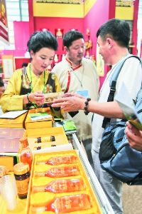 記者在首個公眾開放日當(dāng)天的甘孜展館看到,我州8個名優(yōu)特色產(chǎn)品的展位前,人流如潮?;蛸徺I,或品嘗,或填單訂貨,構(gòu)成了激動人心的一幕。和絕大多數(shù)觀眾一樣,一走進甘孜展館,美國游客尼爾就對這些名優(yōu)產(chǎn)品贊不絕口,吸引他的不僅有甘孜水淘糌粑、爐霍雪域俄色茶,還有高原名貴藥材制品、高原牦牛肉制品等。