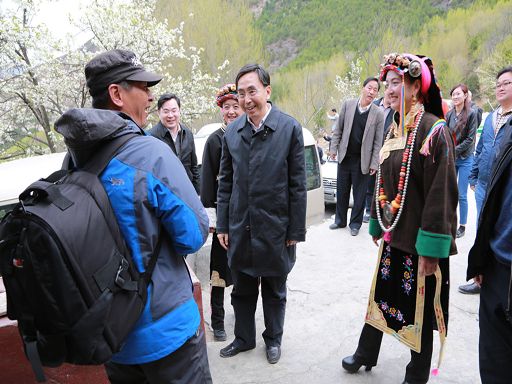 朱小丹在海螺溝新興鄉(xiāng)看望慰問(wèn)困難群眾。