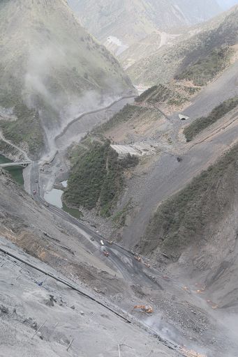 兩河口水電站采用土心墻堆石壩,最大壩高達305米,居世界同類壩型前列。樞紐建筑物由礫石土心墻堆石壩、溢洪道、泄洪洞、放空洞、發(fā)電廠房、引水及尾水建筑物等組成。“兩河口大壩采用當?shù)夭牧辖ㄔO(shè),壩高295米,是目前中國已建或在建的第一高土石壩。”雅礱江流域水電開發(fā)有限公司相關(guān)負責人介紹說,“國家體育場‘鳥巢’體積約680萬立方米,壩體總填筑量4160萬立方米,相當于6個‘鳥巢’的體積。”