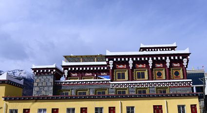 道孚民居已成為康巴最為獨(dú)特的一個(gè)符號(hào)。道孚民居一般依山而憩,臨水而居,多為白墻紅壁花窗和品字型滴水檐,外觀(guān)樸素大方,室內(nèi)精雕細(xì)鏤,描金繪彩。其建筑 俗稱(chēng)“崩科”,以巨大的圓木作為崩科的整體骨架,外墻則用泥土或石片筑砌,房頂用泥土或青瓦覆蓋,外圍墻上都建有小型熏煙臺(tái),屋頂有經(jīng)幡塔,裸露在外的部分大多用油漆或自制的有色土染色,防腐防蛀,整個(gè)房屋冬暖夏涼,防潮抗震。