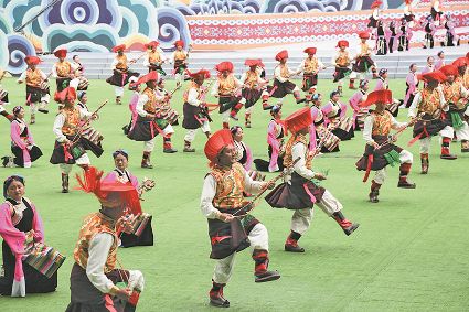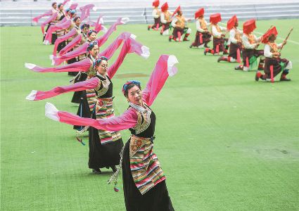 8月8日上午,康定北門體育場內(nèi)歌舞升平、彩旗飄揚(yáng),第九屆康巴藝術(shù)節(jié)開幕式文藝演出在此進(jìn)行最后一次帶妝彩排。本次彩排也讓我們對開幕式文藝演出充滿了期待。