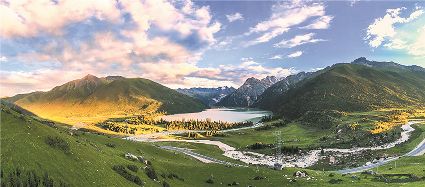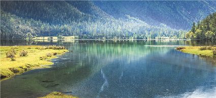 一天之中,數(shù)清晨和傍晚的海子最美,晨光中,湖水猶如鏡面般倒映著周圍的景物,天色漸漸亮了,周圍的景物也在 “鏡子”中漸漸清晰起來,特別是那些雪山下的海子,當(dāng)太陽給雪山鍍上一層玫瑰金,倒影更美。傍晚,落日的余暉灑在海子和它周圍的景物上,又是另一種美,天上再有幾縷晚霞,更絕。四季里,就要看秋天的海子,因?yàn)檫@時(shí)海子周圍的景色是最美的,紅葉、黃葉、綠葉相間,便襯托得海子更美。