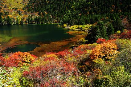 木格措(野人海)作為景區(qū)的核心景點之一,如同一塊珍貴的寶石被四周的森林和大小海子環(huán)繞。