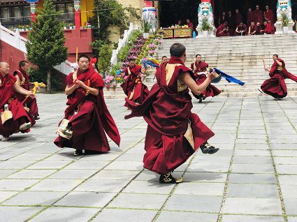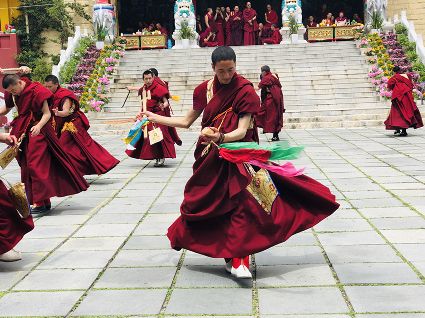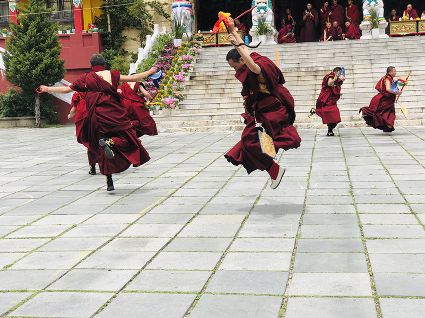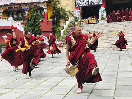為紀(jì)念釋迦牟尼佛的誕辰(浴佛)日,康定群眾每年農(nóng)歷四月八日都要舉行隆重盛大的紀(jì)念活動,稱“四月八”轉(zhuǎn)山會,南無寺的跳神活動就是其中之一。