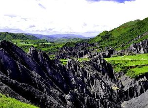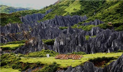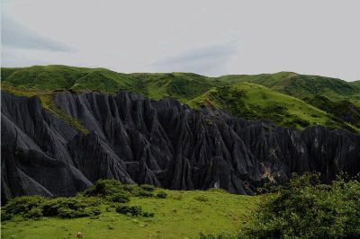 墨石公園,是中國唯一高原石林景觀,被譽為“中國最美景觀大道第八美 ”。受第四紀新構造運動影響,隨著青藏高原的隆起,鮮水河斷裂帶中的巖石受到擠壓、剪切、破碎、糜化,形成糜棱巖石林。石林含丐鹽,受空氣濕度影響,干燥季節(jié)呈淺灰色、淺藍色,濕潤季節(jié)呈滄黑色,因此又稱之為變色石林。