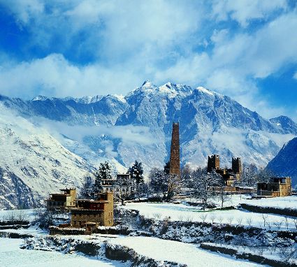 白雪皚皚,窗明幾凈,陽光從高山傾瀉而出。丹巴正沐浴著冬日的陽光,一幢幢外形美觀,風(fēng)格統(tǒng)一的寨房依著起伏的山勢迤儷而建,高高低低,錯(cuò)落有致,與周圍清澈的溪流,皚皚的雪峰,構(gòu)成一幅田園牧歌式的優(yōu)美的鄉(xiāng)村畫卷。