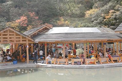 游客在海螺溝半畝山莊溫泉酒店泡溫泉。 海管局供圖