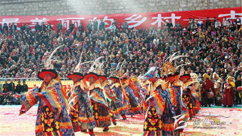 十七世紀時,丹巴巴底大坪村阿洛、益西降稱等喇嘛去西藏學經,求學期間,征行九世班禪同意在日喀則扎什倫布寺學習藏戲,學了《呷拉翁布》(另名《卓瓦桑姆》)和《甲扎共龔》(譯為《文成公主》)二劇的唱腔、鼓鈸奏法、表演技巧,帶回巴底黃金寺,挑選寺中30余名僧徒成立黃金寺藏戲團。此后,每年都在規(guī)定時間演出。丹巴中路藏戲,是中路寺廟喇嘛去西藏學經時帶回的。