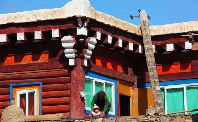 走進(jìn)這座別致的高原城市,首先呈現(xiàn)在你面前的就是那鱗次櫛比的藏式民居。這些民居外表主要由棕白兩色構(gòu)成,白色的屋頂,白色的主墻,木結(jié)構(gòu)處多用棕色顏料染涂,其間配以紅色、藍(lán)色圖案,在藍(lán)天、白云、青山、綠水的輝映下,仿佛幻化成妙不可言的積木圖案。這里的民居修得美輪美奐。如果不是親眼見(jiàn)到,還一定會(huì)認(rèn)為這令人眩目的房屋是夢(mèng)境。這就是道孚民居,被譽(yù)為散落人間的仙境皇宮。