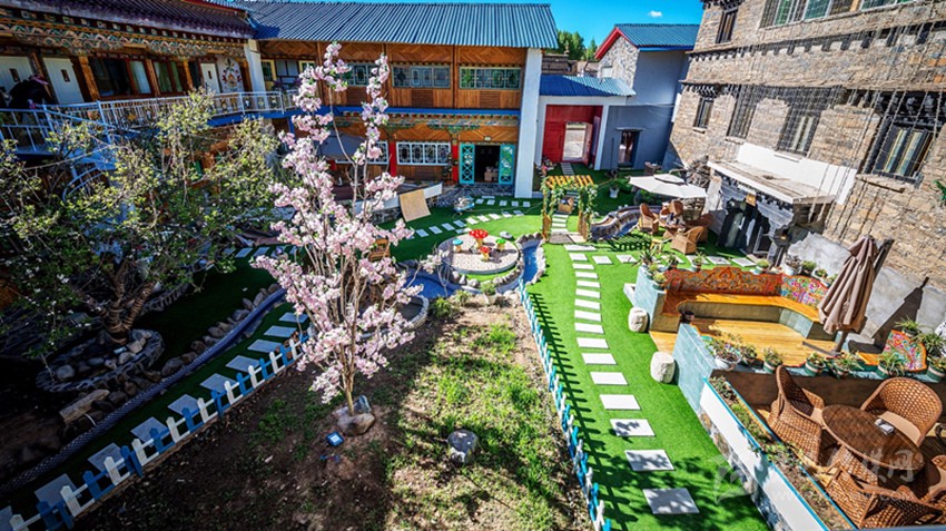 曾經的倉庫變成了咖啡廳,關牛的地方變成了餐廳,土司房變成了溫泉套間,四合院變成了小橋流水,雖然有些改變,但留給客人的依舊是一個傳統(tǒng)藏式四合院。“唯一改變的只是多了些新人新事來來往往,在這里從你的全世界路過……”石雅琴借用張嘉佳的《從你的全世界路過》的話語,道出了她對“親愛的宅宅”的“定性”。