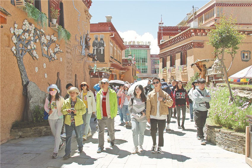 9月2日,理塘縣“勒通古鎮(zhèn)·千戶藏寨”景區(qū)游人如織,來自各地的游客暢游古鎮(zhèn),感受濃郁的藏文化。