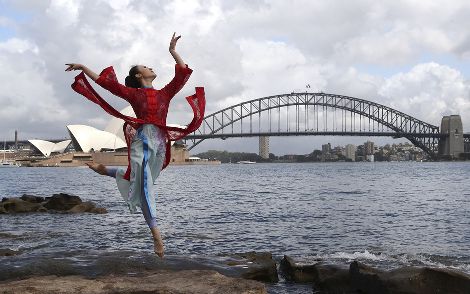中國(guó)女孩悉尼歌劇院前跳芭蕾