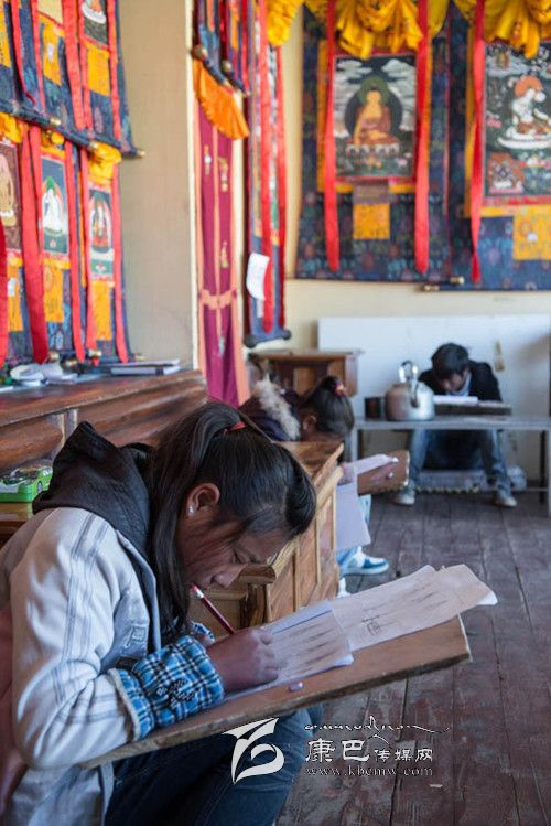 11月11日,幾個(gè)孩子在學(xué)習(xí)唐卡畫基本功。