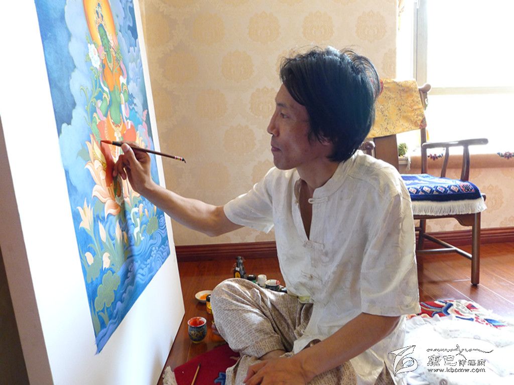 拉蒙正在繪制唐卡。