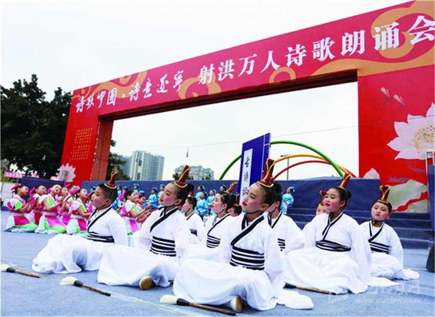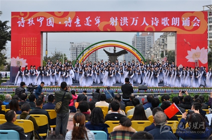 據(jù)了解,本次活動是《詩刊》2016年度陳子昂詩歌獎系列活動之一,參與人數(shù)之多、規(guī)模之大,在射洪縣尚屬首次?,F(xiàn)場由射洪中小學(xué)生和企事業(yè)單位組成的方陣和演出隊(duì)伍,以載歌載舞或配樂詩朗誦等形式登臺表演, 內(nèi)容以經(jīng)典詩詞為主,也有圍繞當(dāng)前中心工作而創(chuàng)作的新詩。這是文化的傳承,更是血脈的延續(xù)。參加詩歌朗誦會的最小的4歲,或許他們不懂文字背后的美,并不理解字里行間透露出的人生況味,但他們在射洪這樣的文學(xué)滋 養(yǎng)中出生、成長。