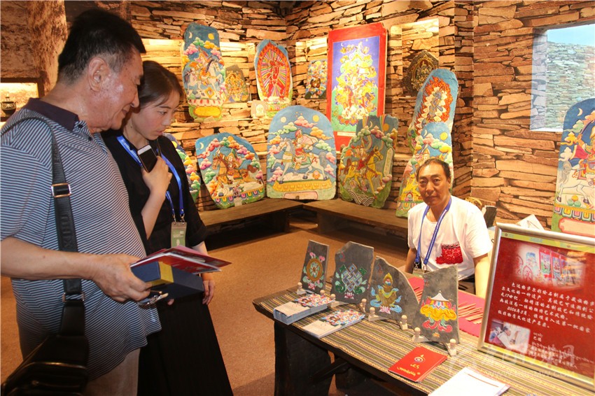 記者在現(xiàn)場看到,多位非遺傳承人借助聲光電、AR等新技術(shù)進(jìn)行演示,立體直觀地展現(xiàn)了走廊區(qū)域文化產(chǎn)業(yè)項目在推動特色文化資源與科技融合方面的新趨勢。其中,我州展出的菩提珠、勉唐派唐卡、郎卡杰唐卡等民族特色工藝產(chǎn)品,都給觀眾留下了深刻印象。