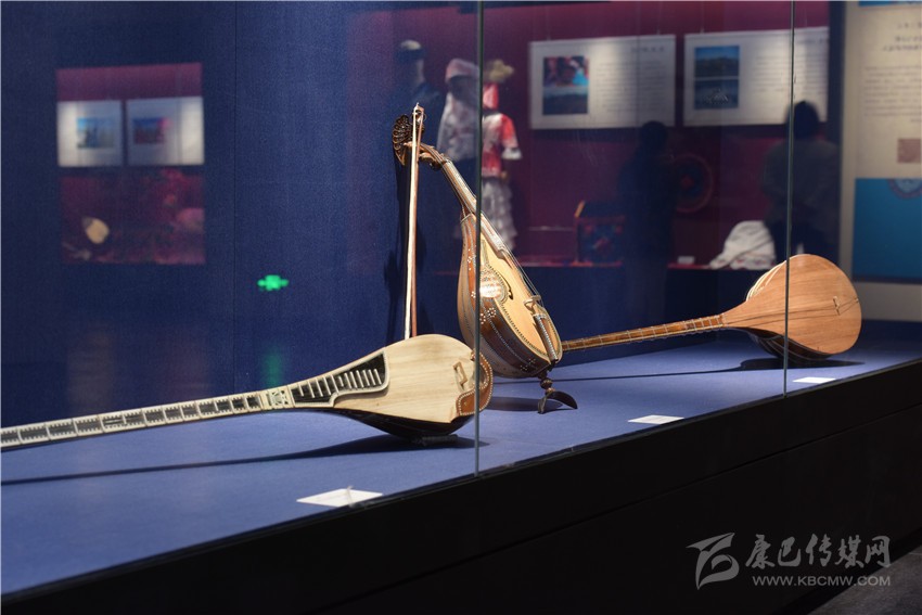 走進凹字型的展廳內(nèi),可見蒙古族的馬頭琴、哈薩克族的冬不拉、維吾爾族的手鼓朵帕、回族的掛毯湯壺等。展覽以實物和圖片相結(jié)合的形式,從“草原驕子”、“刀郎木卡姆”、“駿馬與詩歌”、“花兒與少年”四部分展現(xiàn)博爾塔拉草原上各民族獨具魅力的生產(chǎn)方式、衣食住行、傳統(tǒng)技藝、民族服飾、文化娛樂等民俗風(fēng)情,為觀眾呈現(xiàn)了博州異彩紛呈的地域文化。