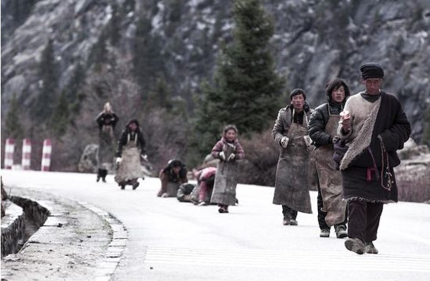 安靜的,用心走入影片,與親人一樣可敬可愛(ài)的藏人們圍爐席地而座,一碗接著一碗享用酥油茶和糌粑,細(xì)碎地說(shuō)些家常的話(huà)。探索他們的內(nèi)心世界,選擇與他們一起虔誠(chéng)朝圣。信仰,使他們變得更加善良、自律,并有著比一般人更強(qiáng)大的信念和毅力。年邁的爺爺為了自己年輕時(shí)的夢(mèng)想踏上朝圣之路;小女孩對(duì)前路充滿(mǎn)好奇而無(wú)所畏懼;孕婦期許美好未來(lái),更加執(zhí)著;屠夫放下屠刀,義無(wú)反顧的朝著圣地邁進(jìn)。在那處漫水的路面,我畏懼了,他們卻毫不猶豫地脫掉外套撲向水里,動(dòng)作敏捷,無(wú)所顧忌,一秉虔誠(chéng)的心讓人震撼。影片結(jié)束,我?guī)锥嚷錅I……