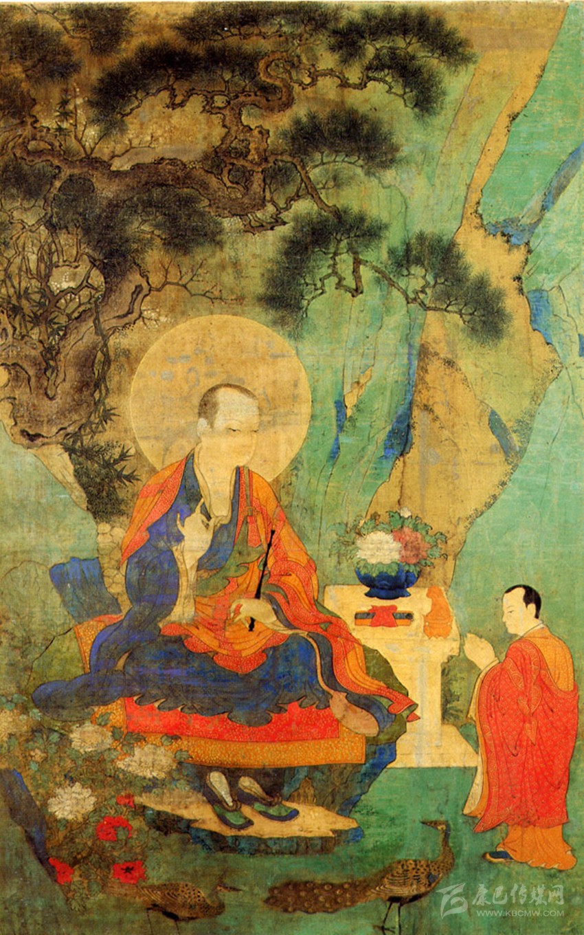 公元1408年,噶瑪巴·德銀協(xié)巴應(yīng)大明永樂(lè)皇帝之邀,前往南京弘法。明成祖朱棣命宮廷畫(huà)家將此隆盛之事繪制成了《噶瑪巴為明太祖薦福圖》,而后又把此圖做成織錦畫(huà)賜予了楚布寺。