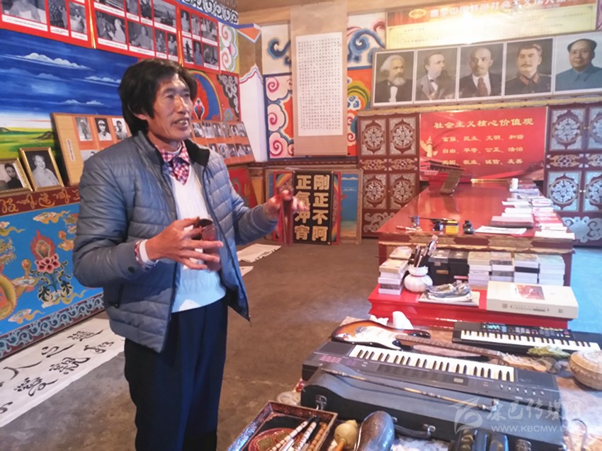 到了九龍,記者幾次打算采訪呷爾鎮(zhèn)原文化站站長(zhǎng)王長(zhǎng)生。王長(zhǎng)生,人稱王老表。65歲的王長(zhǎng)生本該退休在家安享晚年,然而,作為九龍乃至甘孜州的文化名人以及他在開(kāi)展群眾工作方面的建樹(shù),退休后,他依舊是個(gè)大忙人,黨的十九大勝利召開(kāi)后,作為省級(jí)優(yōu)秀宣講員,為了搞好宣講,他潛心備課,黨的十九大精神宣講全面鋪開(kāi)后,他與宣講團(tuán)成員一道奔赴瀘定、丹巴、雅江、九龍等縣農(nóng)牧區(qū)宣講。1212日,他忙里偷閑,在美觀整潔的家里接受了記者的采訪,多才多藝的王長(zhǎng)生向記者展示了他高超的才藝。