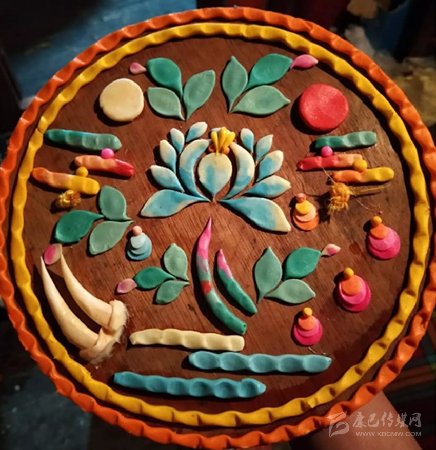 有傳說稱641年文成公主進藏,帶去一尊釋迦牟尼12歲等身像并將其供奉于拉薩的大昭寺,當?shù)厝罕娪盟钟妥龀苫ü┇I于佛前,以示崇敬之心,后各藏傳佛教寺院相繼使用,視為禮佛珍品,獻酥油花遂成為正月祈愿大法會的重要內(nèi)容。在發(fā)展過程中,酥油花的塑造方式、花色品種、內(nèi)容題材和工藝技巧都不斷發(fā)生著變化。