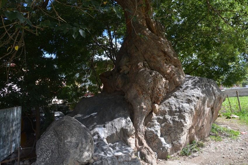 如今古桑抱石守衛(wèi)著巴塘這片熱土近千年,對(duì)研究巴塘的人文和氣候變化有極其重要的價(jià)值,保護(hù)好它理所應(yīng)當(dāng),擔(dān)心的是巨石旁長(zhǎng)起兩棵皂莢樹,已比碗口還粗,大有后來居上之勢(shì),若不未雨綢繆,必勢(shì)大難除。