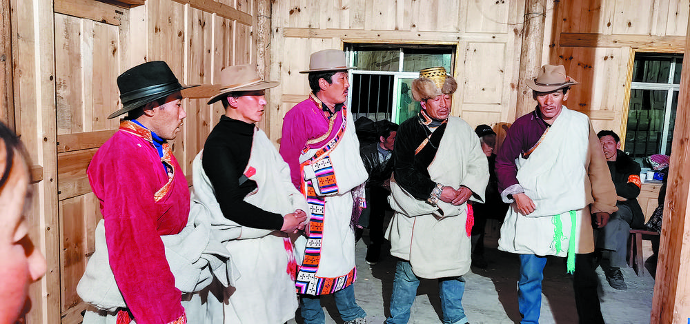 夜臨了,月低垂,整條山谷陷入了藍(lán)色的世界,近處是墨綠,遠(yuǎn)處是淡綠,雄渾的大山在綠的撫摸下也變得婀娜起來(lái);古老寨子的火塘也燃起來(lái)了,勞作了一天的普米人聚在一起,跳起了原始氏族人群圍火而舞的傳統(tǒng)舞蹈,曲調(diào)悠揚(yáng)且古樸動(dòng)人。